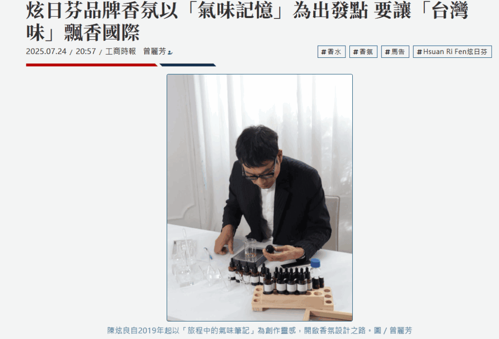 文章來源:炫日芬品牌香氛以「氣味記憶」為出發點 要讓「台灣味」飄香國際馬告,是台灣原生香料,有餐飲業者研發出馬告香腸,但台灣在地香氛品牌「Hsuan Ri Fen炫日芬」,2020年推出首款以「馬告」為基底的香水,揉合檸檬、柑橘與辛香的氣息,帶來宛如清晨山林般的清新醒神,獲得眾多消費者的青睞;隨後更發展出一系列的馬告洗沐相關用品,甚至打進飯店通路販售。「Hsuan Ri Fen炫日芬」品牌創辦人暨調香師陳炫良以「氣味記憶」為出發點,將台灣的自然景色、人文風情與情感記憶,萃取進一瓶瓶的香水之中,堅持以台灣為香氛靈魂的根基,研發出以「馬告」為基底的不同風味香水,誓言要讓「台灣味」飄香國際。事實上,陳炫良自2019年起便以「旅程中的氣味筆記」為創作靈感,開啟香氛設計之路。品牌初衷,是希望將香水從純粹的時尚消費品,轉化為人們生活中的情感載體。陳炫良表示,「香水就是有味道的空氣,我們用氣味去建構無形的風景,也讓情緒得以寄託。」但是,一瓶香水的誕生,往往來自數十種、甚至上百種香料的排列組合,每一款配方皆經過無數次修正與測試,才能成就一支協調又富層次感的香氣作品。陳炫良說,在品牌發展歷程中,「Hsuan Ri Fen炫日芬」始終堅持以台灣為香氛靈魂的根基,陸續推出多款別具意義的香氛商品。例如2021年的「焦點香水」與「隱約香水」,分別以溫暖木質香氣與白花系調性,建構出優雅又不張揚的氣息;而2025年推出的「山迴」與「TRUE」香水,則將品牌推上氣味語言的新高峰。其中,「山迴」香水歷時三年研發,靈感來自台灣山海壯闊的自然景色,融合馬告的辛香與馥奇調的沉穩,透過嗅覺體驗,喚起人們對台灣土地的深刻印象;而今年7月新推出的「TRUE」香水,則是一款草木調作品,搭配土壤、陽光、綠植的氣息交織,彷彿在都市生活中尋得一處靜謐綠洲,展現品牌對自然與人之間連結的詮釋。陳炫良不僅追求香氛創作的純粹與美感,「炫日芬」品牌更將產品安全與環境友善視為品牌核心。所有使用的香料皆需通過國際分析報告(COA)與安全資料表(MSDS/SDS)檢驗,並符合歐盟IFRA對原料使用的嚴格規範,確保對人體與環境皆無負擔。同時,產品製程遵循ISO 22716國際化妝品良好製造規範,並完成衛福部化妝品法規與環保廢棄物申報流程,讓消費者在使用每一瓶香水時,都能感受到來自品牌的用心與安心。在永續實踐方面,品牌核心香料「馬告」的來源更具社會意義。陳炫良表示,馬告大多分布於海拔900至1,200公尺的台灣原鄉部落,由於生長環境限制、採集不易,品牌選擇以類契作方式與原鄉合作收購,並承諾每年提撥部分收益回饋部落,協助信義鄉人和國小學童與在地運動員培訓,落實「取之於土地、用之於土地」的永續精神。陳炫良強調:「我們不只是做香水,還想讓更多人透過氣味去認識台灣這塊土地。」因此,在創作每一款香水時,團隊不僅參考國際潮流,更著重氣味所傳遞的文化價值與故事脈絡。透過香氛傳遞台灣的情感與風土特色,讓來自不同文化背景的人們,都能透過氣味建立情感共鳴。陳炫良表示,未來,「Hsuan Ri Fen炫日芬」將持續推出更多融合台灣文化與國際香氛語言的作品,同時拓展品牌於亞洲與國際市場的影響力,讓來自台灣的香氣與故事,能被更多人聞見與記住。品牌也將陸續參與國際香氛展覽與文化交流活動,進一步推廣台灣香氛工藝之美,讓世界認識來自台灣土地的氣味記憶點。